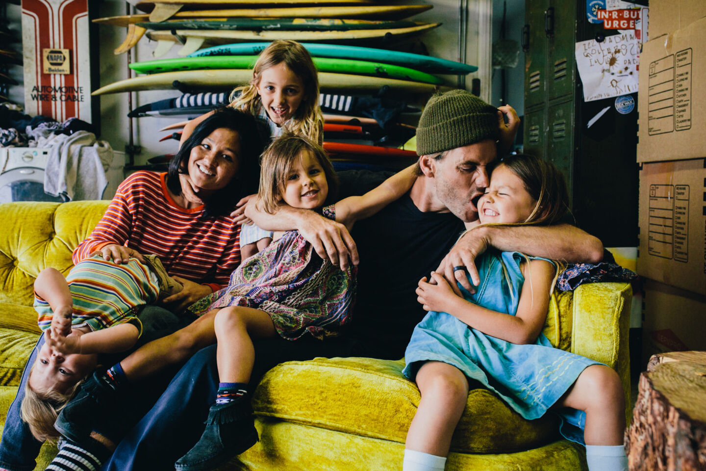 The Stopnik tribe, Scott and Lindsay, both aged 32, along with their four children, Rosie Pai, aged seven, Izzy Pai, aged six, Goldie Pai, aged four, and Sid Vin, aged one, their cat Wizard, turtle, Tortellini, chickens Rainbow, Lovey, Lil Fella, Blossom and Daisy, are our definition of a modern family. Saturday mornings in the Stopnik home aren’t your standard cartoons and cereal before soccer practice. They often spend them together, selling wares at flea markets and you'll see their front drive obscured by a cement skate ramp, in lieu of a minivan. Scott and Lindsay are proof that there are no hard and fast rules to parenting, that being a parent doesn’t mean growing old, but growing with your children, and making sure to enjoy yourself along the way.