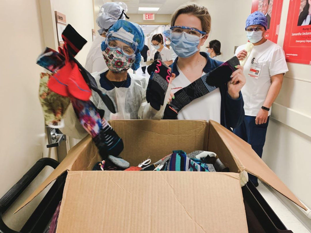 We had already been trying to figure out how we could best help, but with her insight, were able to put a plan into action that put socks directly into the hands – and onto the feet – of nurses, doctors, respiratory therapists, and nursing home caregivers across the country. By the end of March, thousands of socks had been shipped to hospitals in New Jersey, Brooklyn, Queens, Boston, Miami, Chicago, Seattle, New Orleans, Denver, Philadelphia, Los Angeles, San Francisco, Houston, Phoenix, Salt Lake City, New Mexico, and many more.